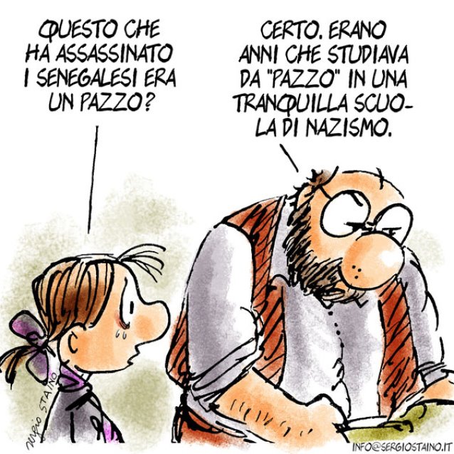 A noi le Leggi Scelba e Mancino ci fanno un baffo, possiamo dire di tutto e organizzarci in meravigliose community virtuali e non. Abbiamo circoli esclusivi, svolazziamo liberi nei social network inneggiando i cari vecchi dittatori di un tempo e glorificando gli eroi del passato e del presente che sterminano le razze inferiori. Abbiamo i nostri parlamentari a Roma e in Europa, siamo stati anche al Governo e ci torneremo sicuramente presto perché siamo liberi! Cogliamo ogni occasione per spargere merda sugli altri perché riteniamo gli immigrati un’aberrazione all’umanità. Noi non vogliamo i negri in casa nostra, ma neanche i gialli, i rossi neppure a parlarne e anche quelli misti ci fanno un po’ senso. Qua ci scopano il lavoro e ci rubano le mogli. Perché a noi quelli che vendono accendini e borse non vanno bene ma glieli compriamo perché dobbiamo pur sfoggiare una Gucci di tanto in tanto, cribbio! A noi quelli dell’est non piacciono ma li prendiamo a lavorare a nero nei nostri cantieri e se muoiono diciamo che erano in prova e comunque hanno le donne bone che però sono un po’ care per cui, a volte, ci tocca andare con le negre. A noi i cinesi danno proprio fastidio ma hanno i prezzi imbattibili. Noi vogliamo stare sereni e odiare tranquillamente in pace un po’ tutti. Sogniamo un paese libero di poter continuare ad evadere il fisco per cui, a noi questi extracomunitari, che si fanno un mazzo tanto per pochi euro e rischiano l’espulsione, irritano. Molte nostre famiglie temono d’estate di trovare i loro cadaveri in mare mentre fanno il bagno, ma dico, vi pare giusto per uno che si fa il culo tutto l’anno non potersi rilassare una volta arrivato in spiaggia? Combatteremo con tutti i mezzi questa invasione, la rete ci supporta e la politica anche. Un giorno arriveremo ad avere un paese libero dalle razze inferiori e, se la fortuna ci assiste, troveremo altre cose da odiare ferocemente.